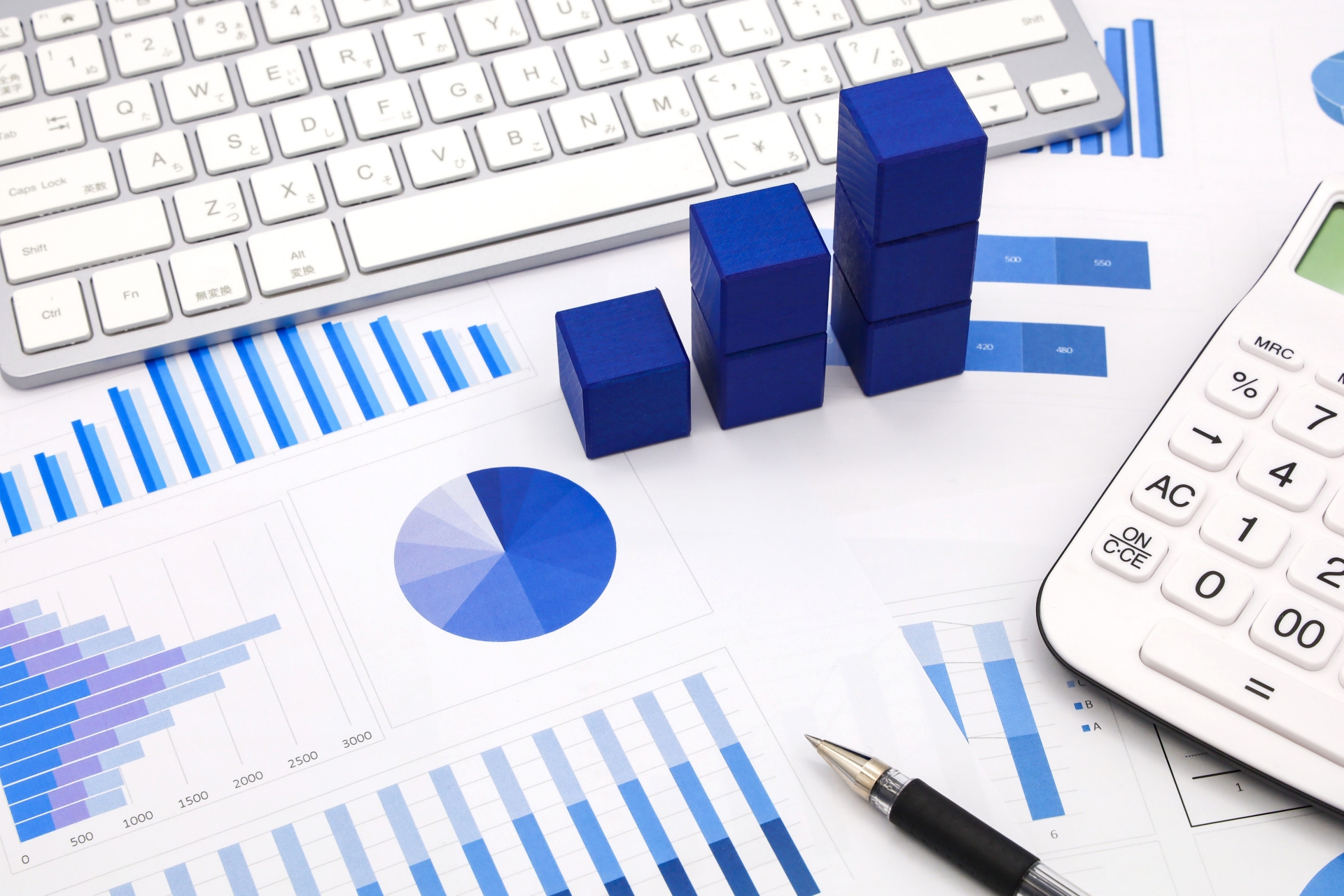 電卓と様々な資料